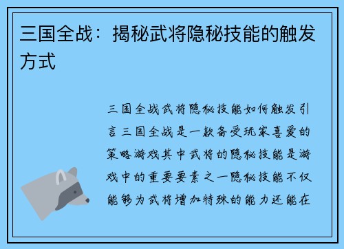 三国群英传2如何提升武将等级 引言: 三国群英传2是一款经典的策略类游戏,其中提升武将等级是玩家们在游戏中追求的目标之一。武将等级的提升不仅能够增加武将的属性和技能,还能够提高战斗力和生存能力。本文将...